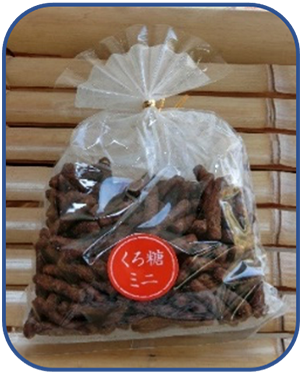 黒砂糖を使い,軽く揚げた細目サイズのかりんとう